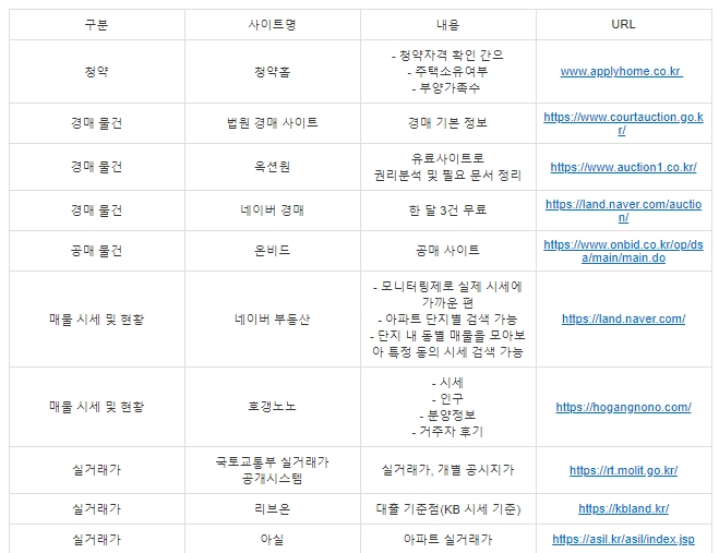 부동산 공부를 하기 위해서는 기본적인 정보들이 필요한데 부린이들에게 필요한 여러 부동산 사이트를 정리를 했다.