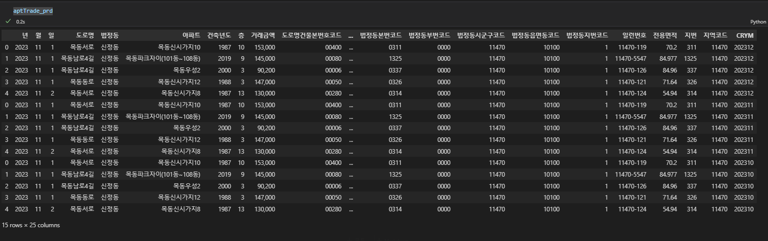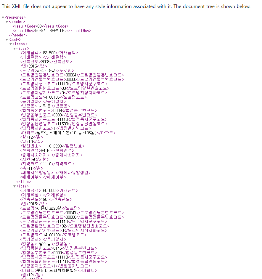 aptTrade = getRTMSDataSvcAptTradeDev(pageNo,numOfRows,LAWD_CD,'202311',serviceKey)